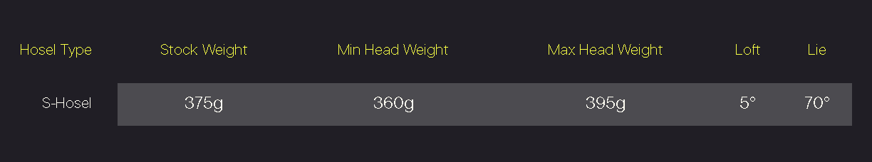 El s-hosel alinea el eje de la varilla justo por encima del centro de gravedad (cg) del putter, creando un punto de equilibrio con la punta hacia arriba que evita la torsión durante el golpe.